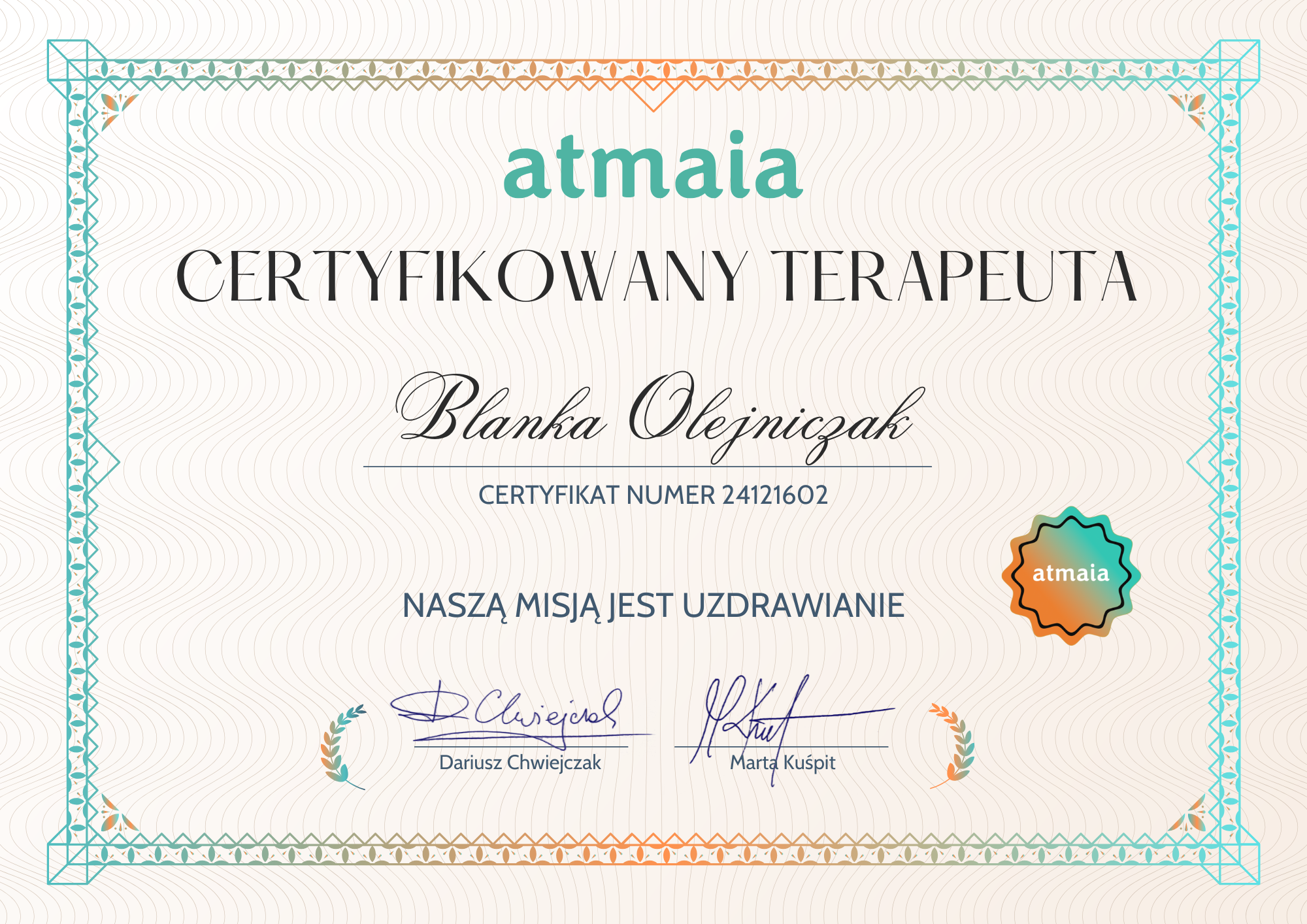 Jestem fizjoterapeutką z 16-letnim doświadczeniem, entuzjastką i praktykiem medycyny holistycznej, ekspertem metody Dotyk dla zdrowia i neurokinezjologii Tobara, które integruję z Kodem emocji. Mam wyjątkową intuicję – głęboką znajomość ludzkiego ciała – wiedzę totalnej biologii. Specjalizuję się w uwalnianiu napięć, bólu i stresu w ciele, precyzyjnej komunikacji z podświadomością w dotarciu do przyczyn dolegliwości. Pomagam odzyskać energetyczną harmonię organizmu, równowagę w przestrzeni emocji